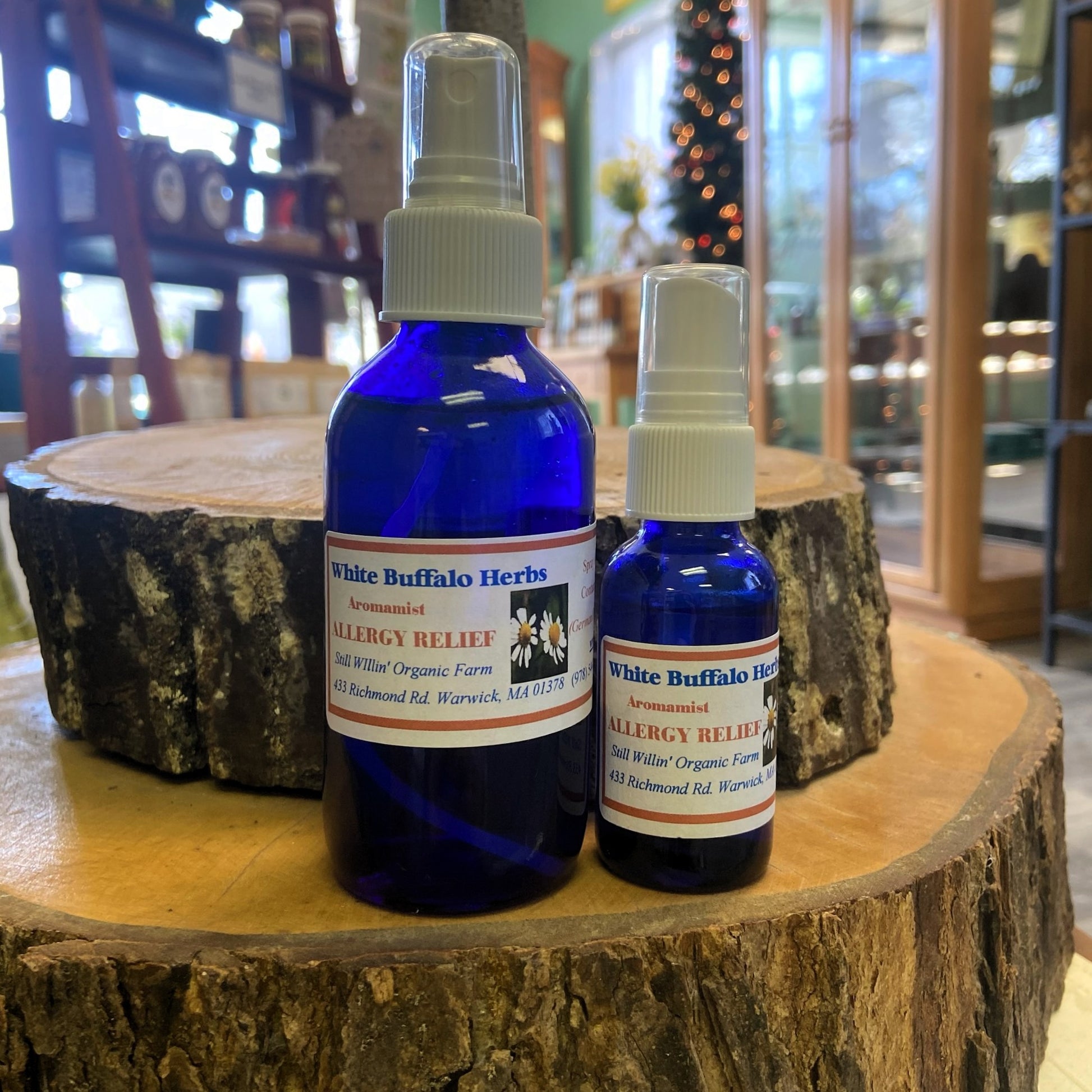 Said to relieve allergy symptoms. Spray a bit on hankie or face to relieve itchy eyes, runny nose, puffy face.