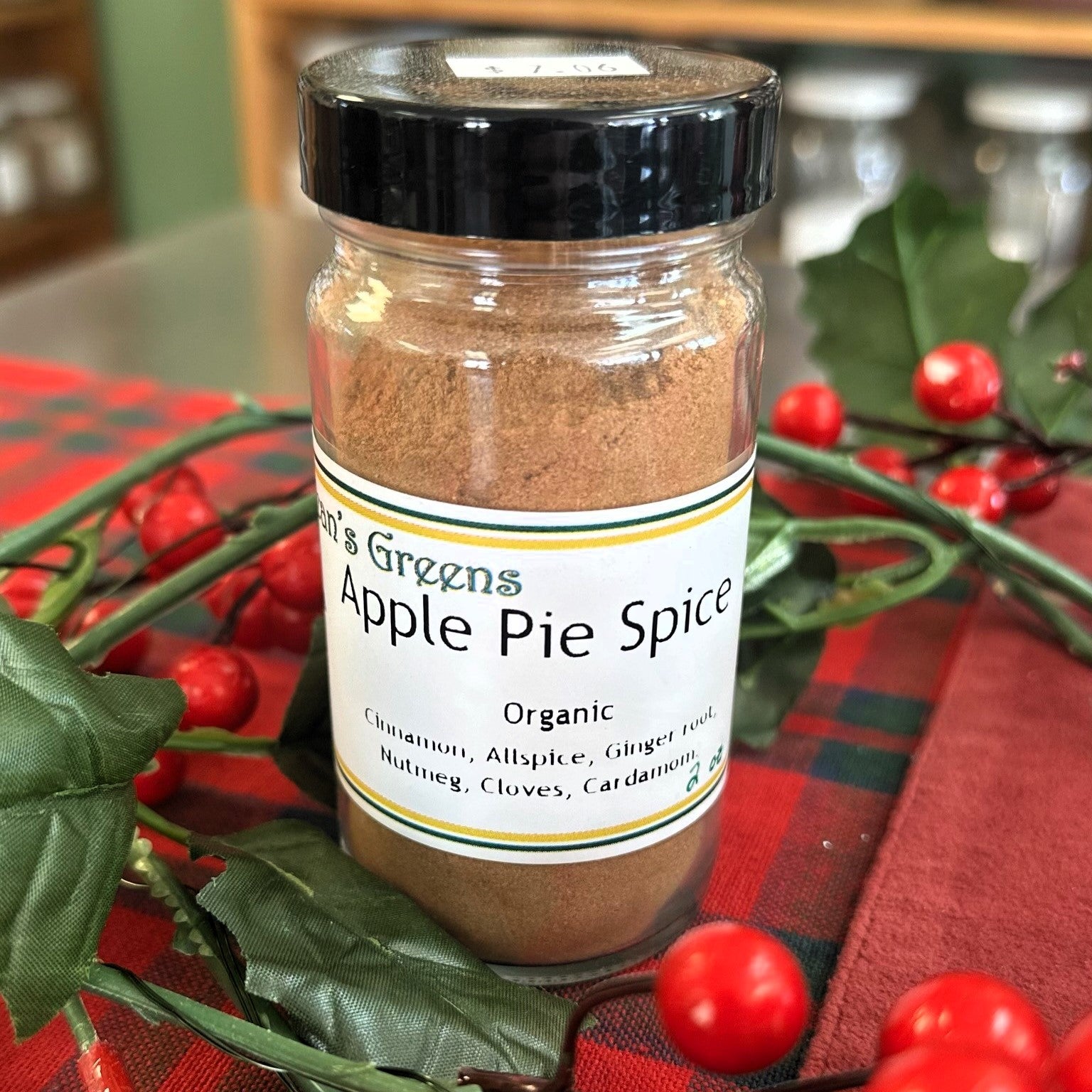 An organic blend of cinnamon, allspice, ginger root, nutmeg, cloves, and cardamom seed. Perfect for apple pie and other apple baked goods!