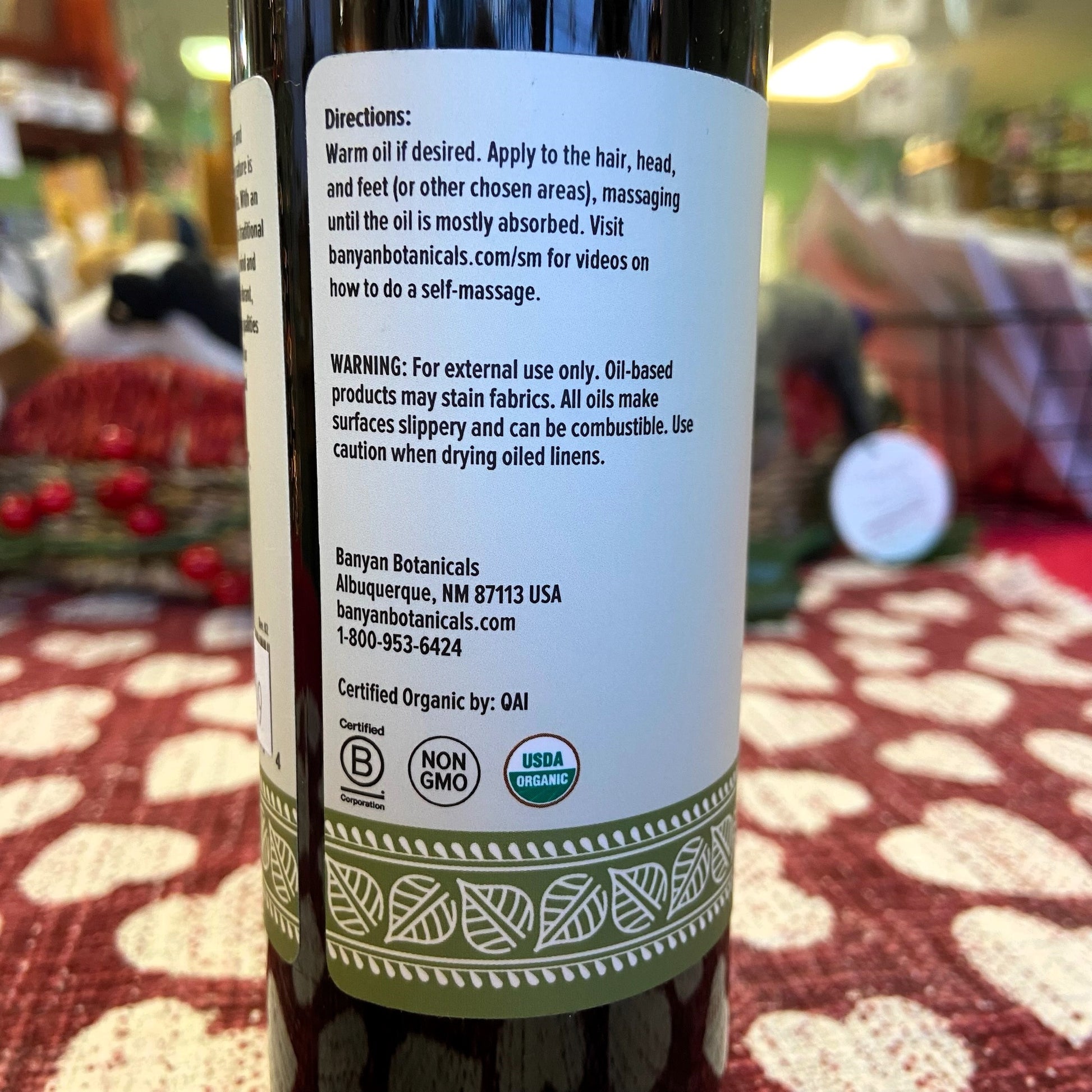 Cooling Bhringaraj in a nourishing sesame oil base, this tridoshic oil particularly addresses pitta, which is often at the root of hair issues such as premature greying and hair loss. Best known as a rejuvenating hair oil, it also soothes the skin, calms the mind, and promotes better sleep.