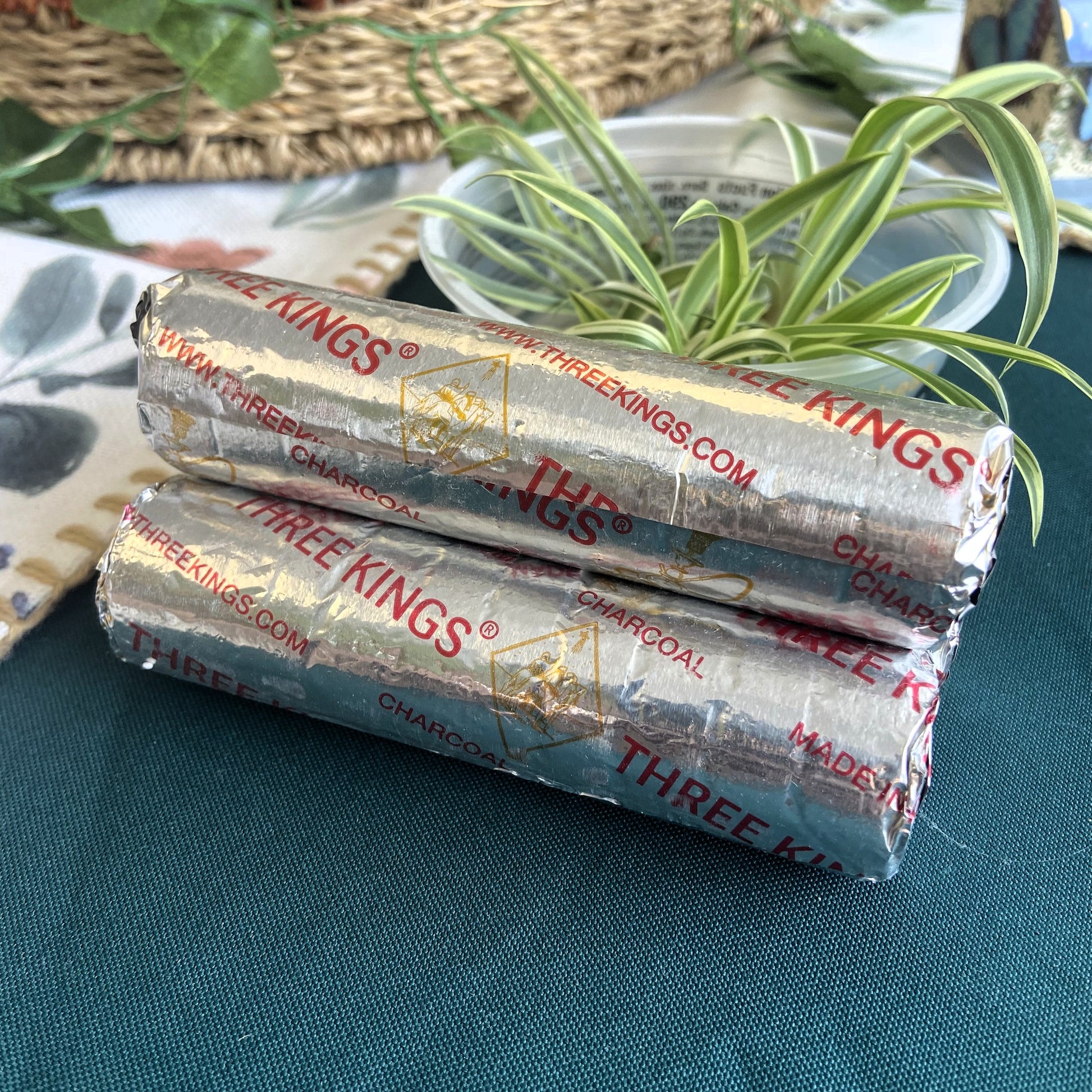 Each roll contains 10 quick-lighting charcoal discs, perfect for burning resins like frankincense and myrrh. Known for their clean, long-lasting burn, Three Kings coals let the true scent of your incense shine through with minimal smoke or odor.