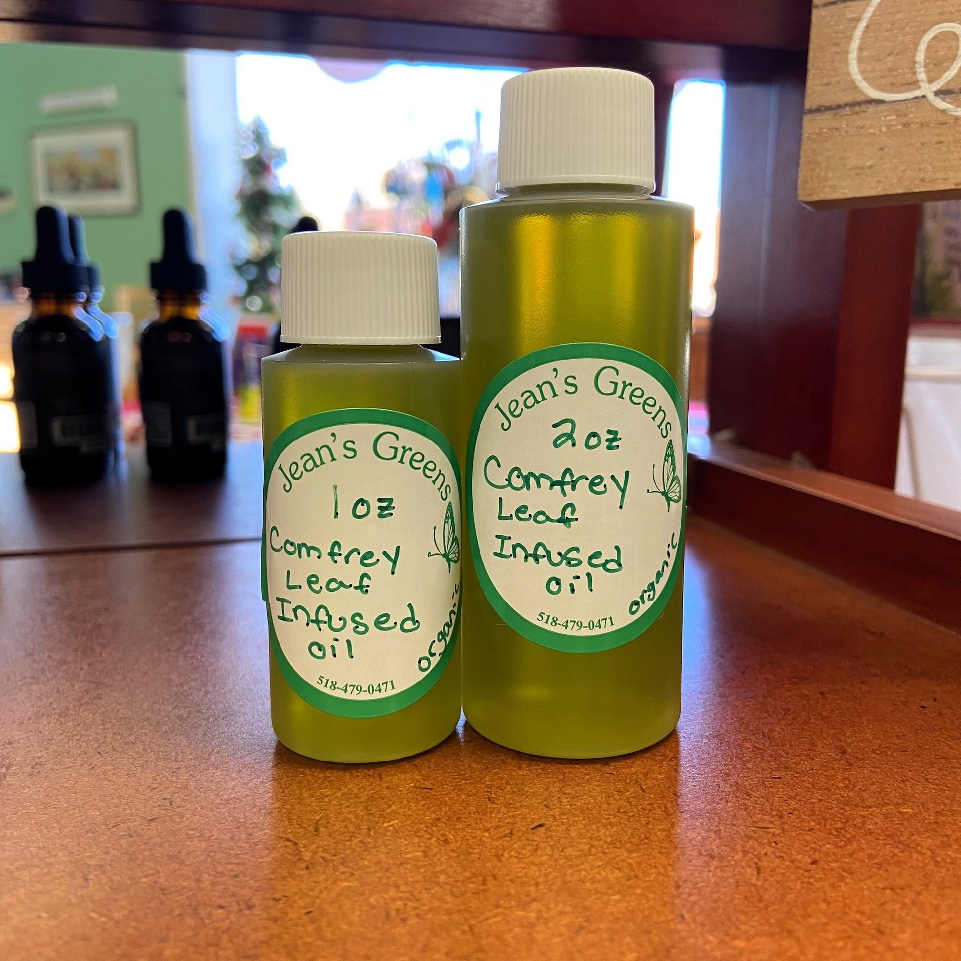 Infused Comfrey leaf in olive oil.
