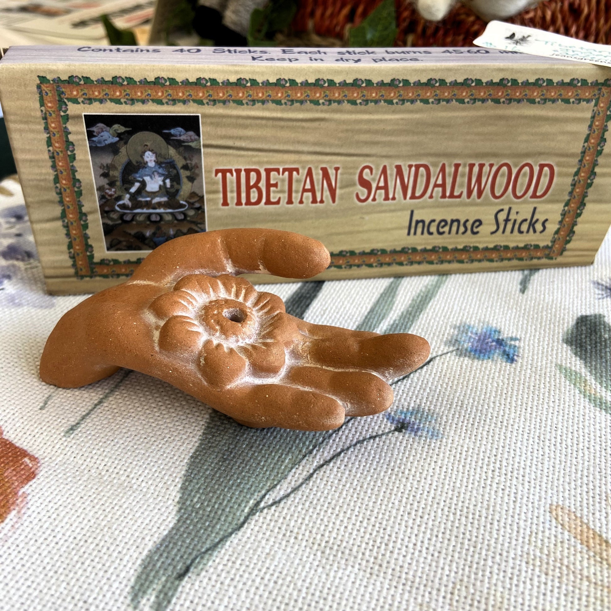 Offering Hands Incense Holder with Tibetan Sandalwood Incense