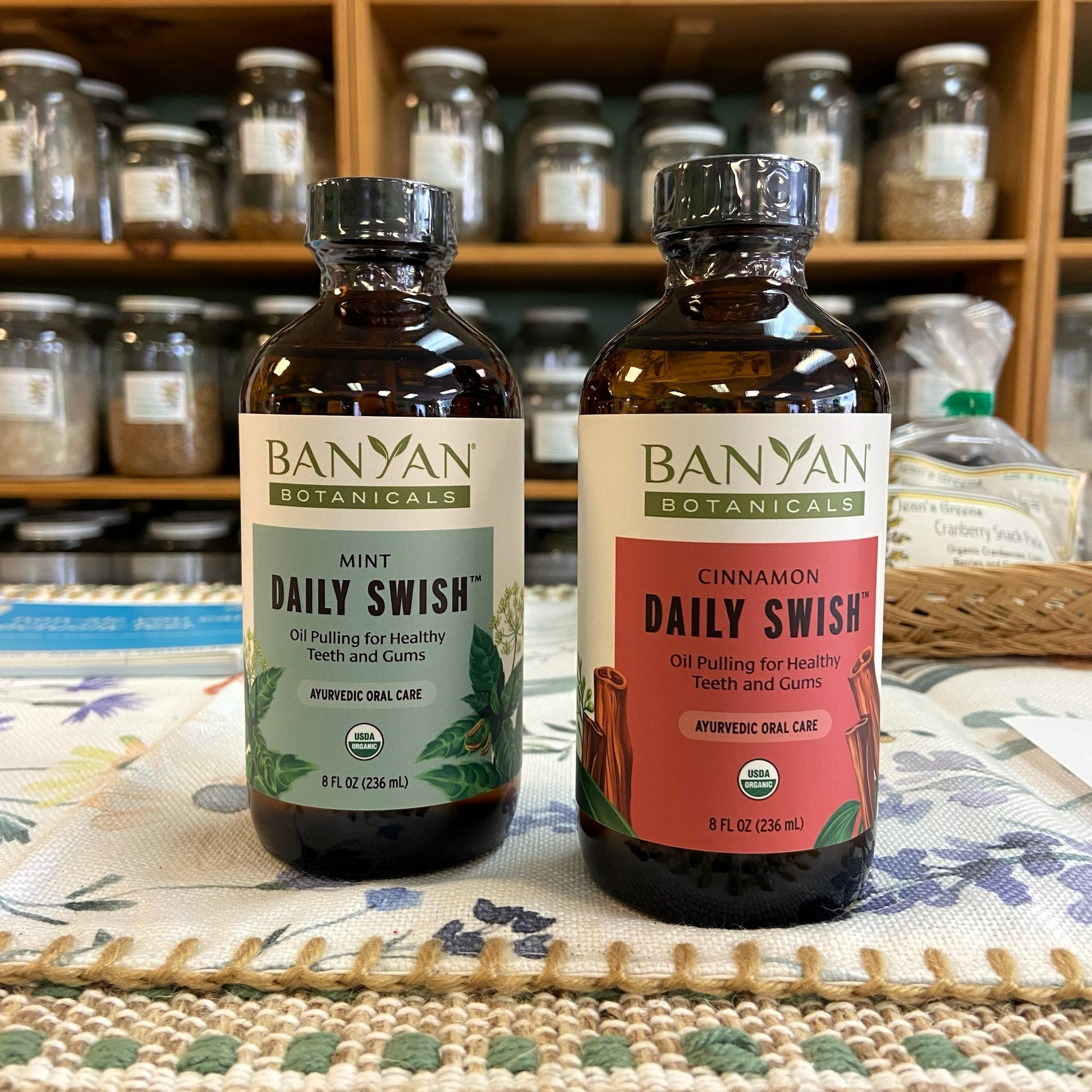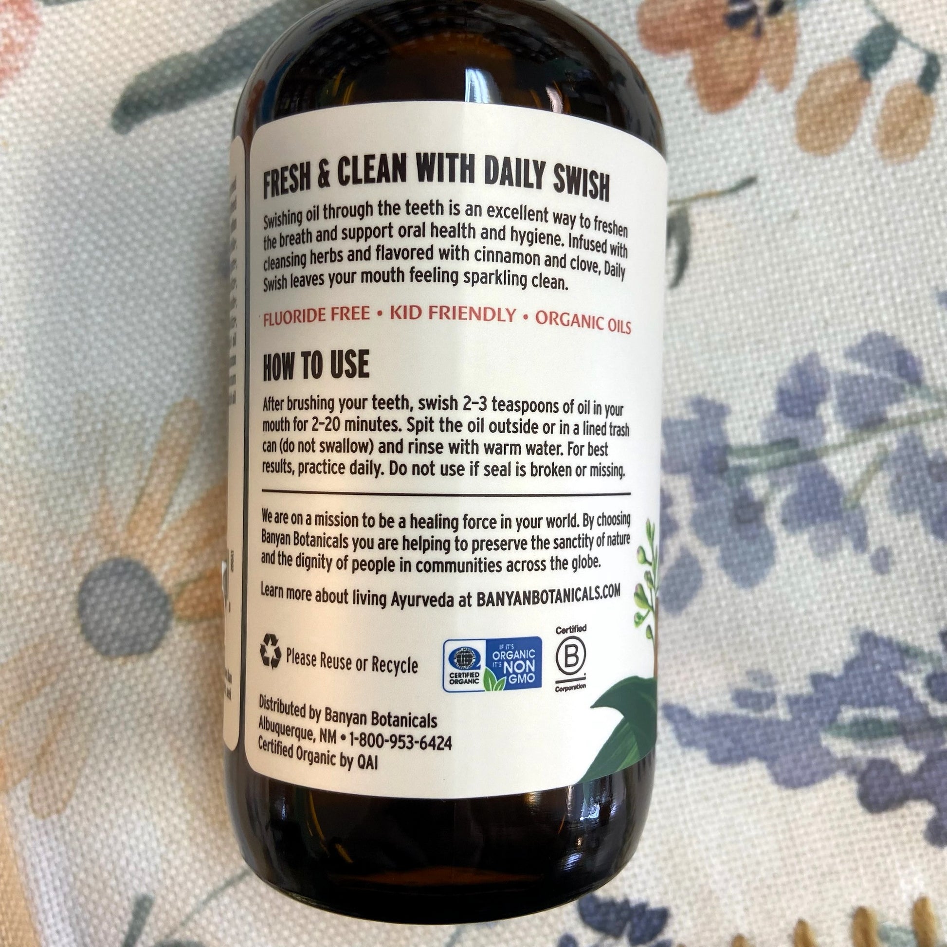 Sesame and coconut oils infused with ayurvedic herbs for overall health and hygiene. Based on ayurvedic oil pulling.