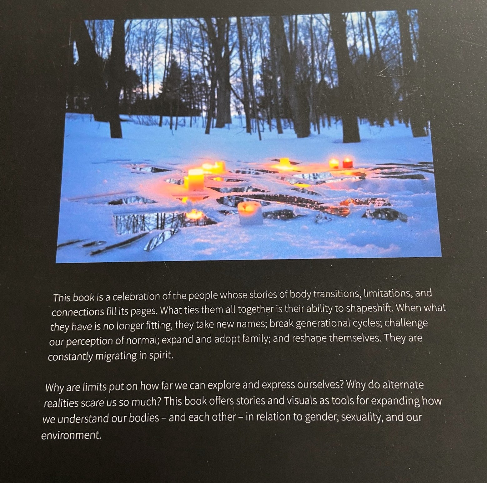 Shapeshifters: Bodies like Water honor the deep connections between the body, land, and queer wisdom. The strength of these connections manifest as the courage to separate from predetermined ideas of gender, to surrender and embark on a sacred journey of self realization.