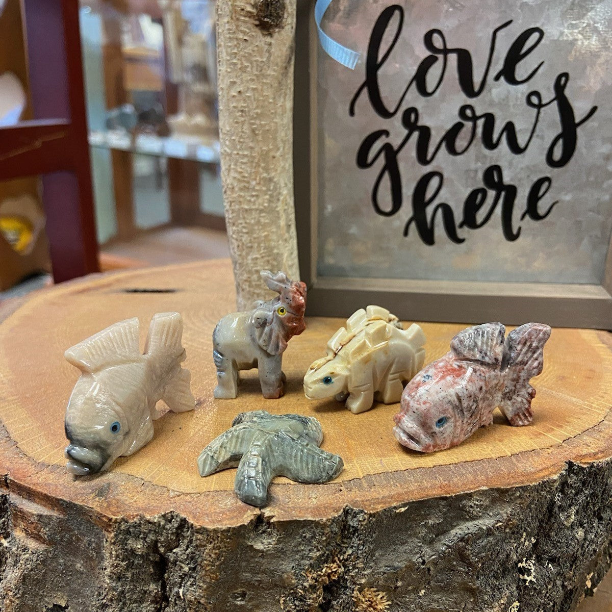 The soapstone used to create the wonderful little critters and animals come in multitudes of color such as red, burgundy, cream, yellow, white, brown, tan, grays, and blacks.