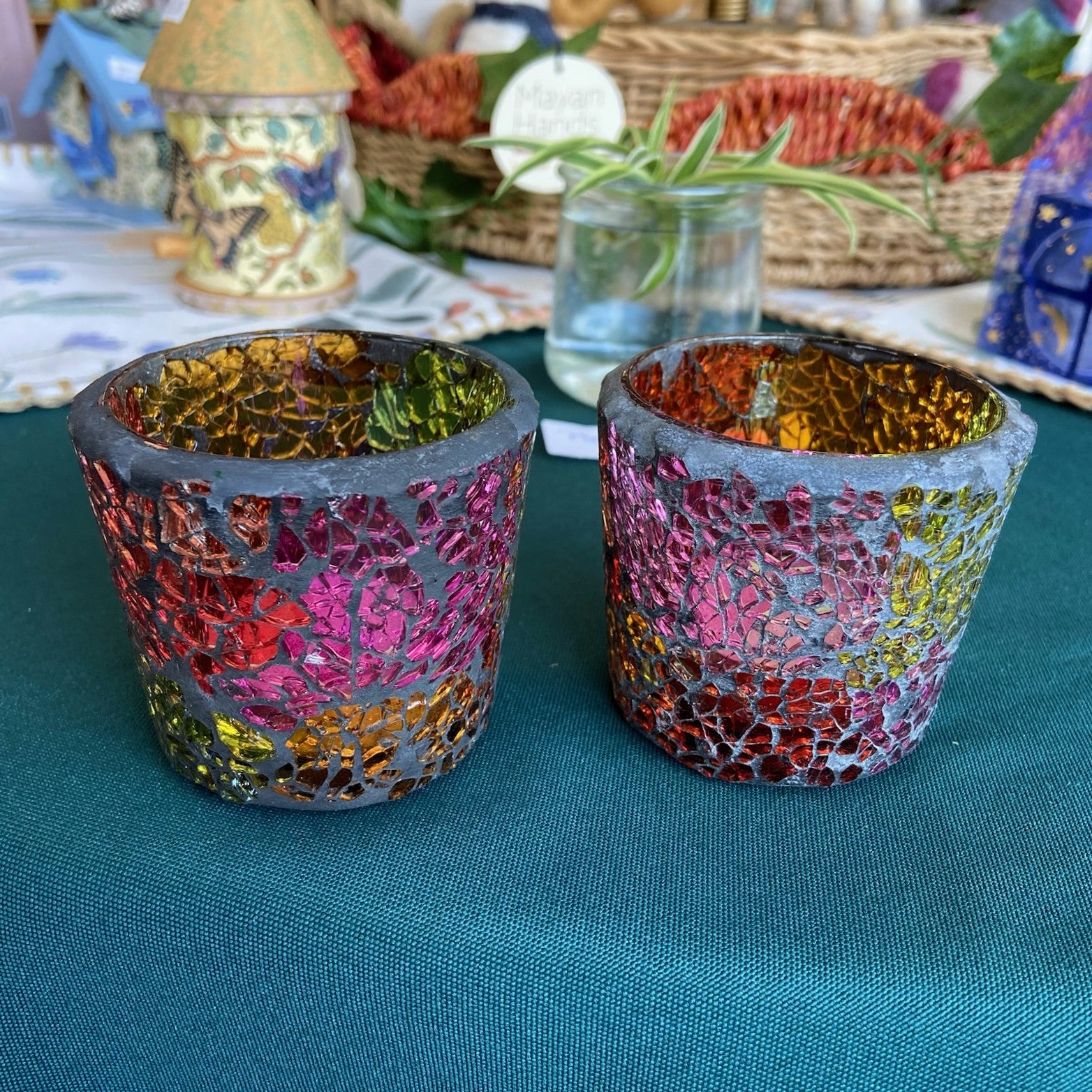 Add a touch of charm and color to any space with this stained glass candle holder. Designed to fit both votive and tea light candles, it creates a warm, inviting glow when lit. Comes complete with a complimentary tea light candle—ready to enjoy right out of the box.