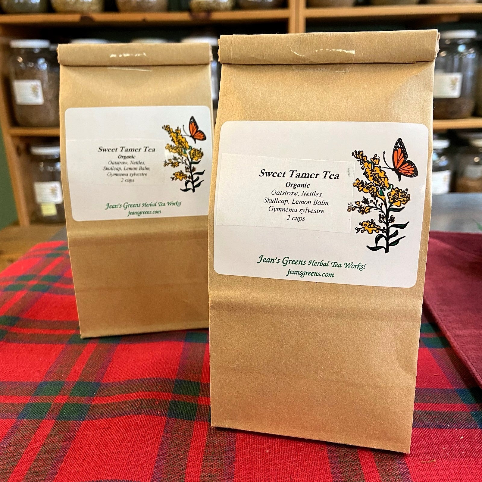 A calming blend of nervine rich herbs with Gymnema leaf to help curb sugar cravings!