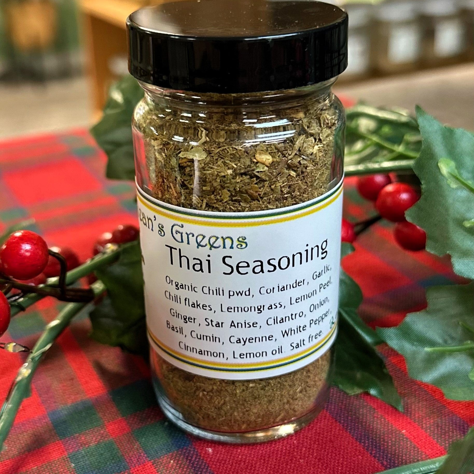An organic Thai blend of chili powder, lemongrass, star anise, coriander, garlic, lemon peel, ginger, onion, basil, cumin & cinnamon.
