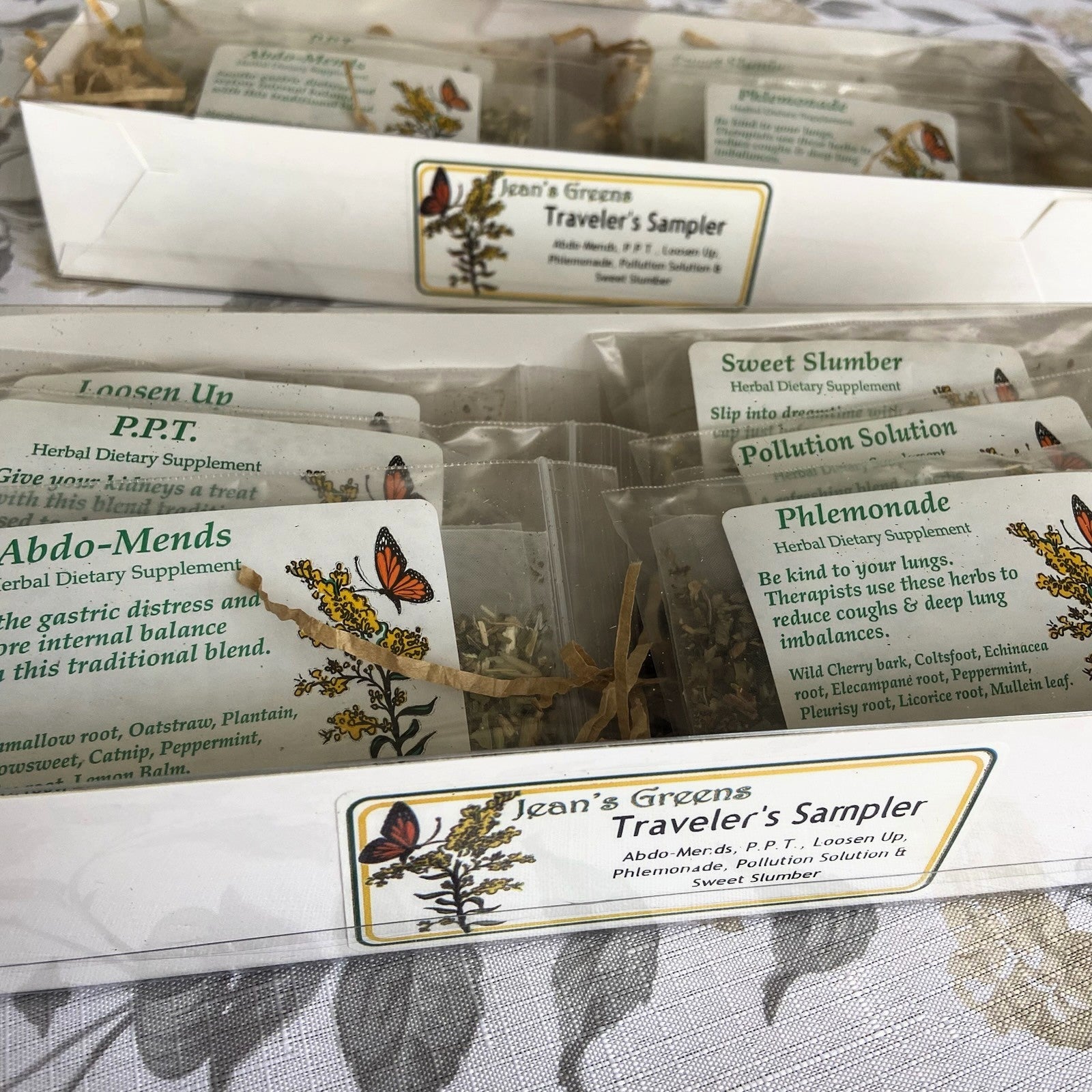 A special selection of 6 blends for the road-weary! 5 T-bags each of Abdo-Mends, Loosen Up, Phlemonade, Pollution Solution, P.P.T & Sweet Slumber.